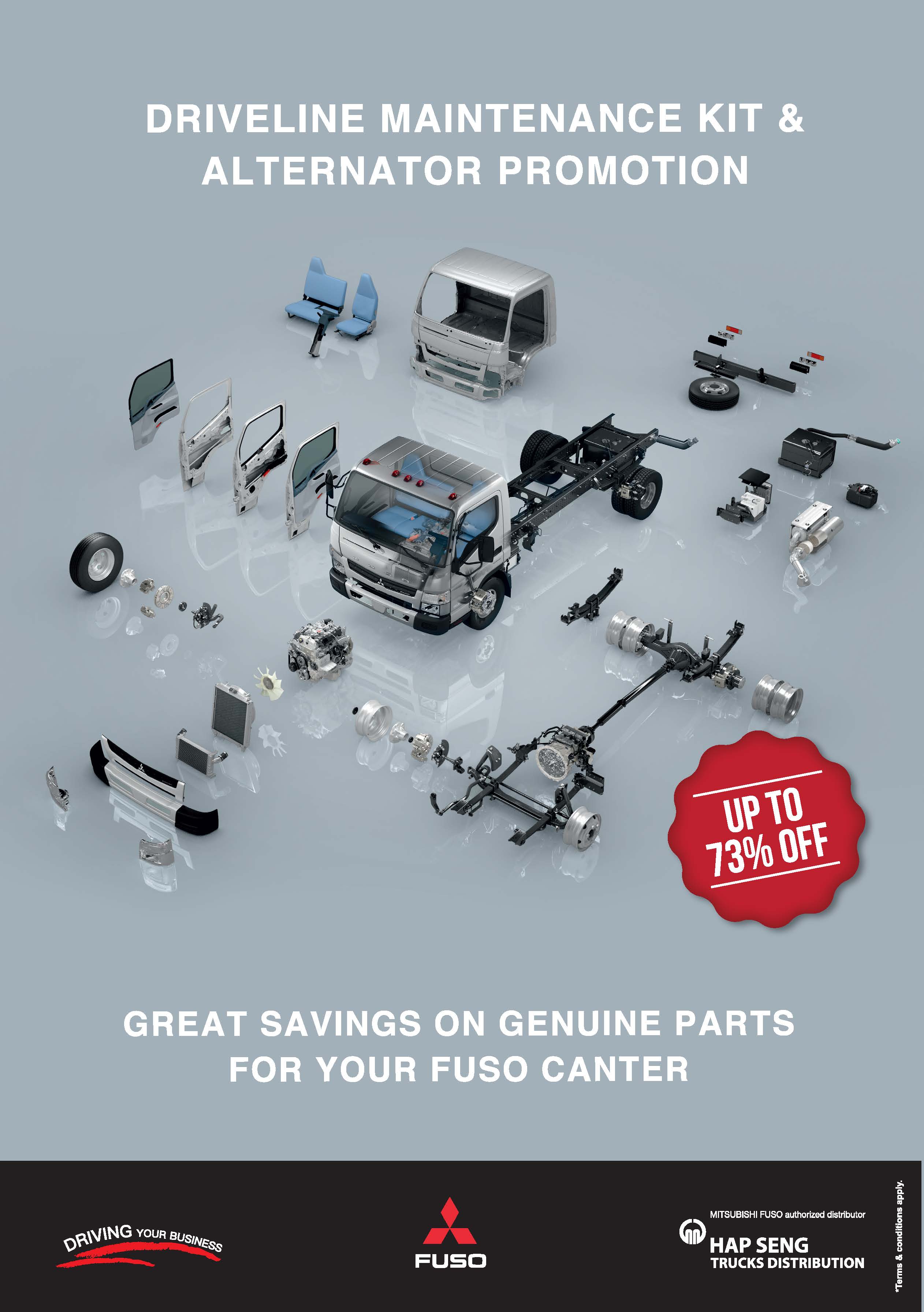 FUSO Genuine Parts ensure that your Canter will always be in its best condition to serve your business in daily operations. Get them now with great savings up to 73%!